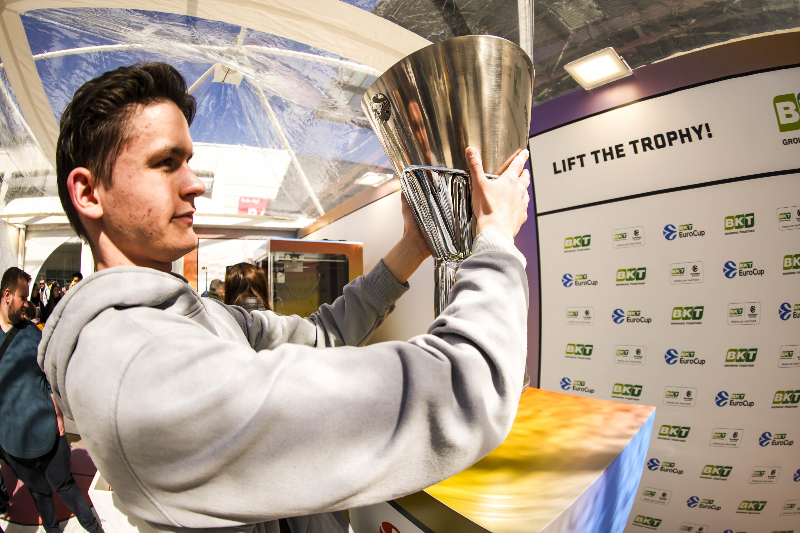 Here, fans could see up close the trophies of the two main continental competitions and take photos while lifting the cups contested every year by their favorite teams: FC Bayern Munich and Alba Berlin in EuroLeague, Veolia Towers Hamburg and ratiopharm Ulm in BKT EuroCup.