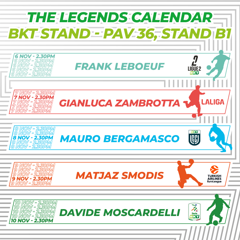 Every day at 2.30pm, BKT brings a legend of football, basketball or rugby to its stand to tell intriguing stories and anecdotes about their careers, making themselves the spokespersons of the values of their sport, which BKT promotes. For fans, it is possible to ask questions, get autographs and take selfies with them.